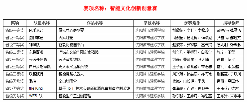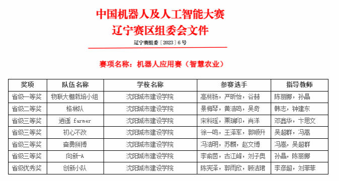 公司EMC易倍官方网站经过校内初赛共选拔出23支代表队,共计69名同学分别参加了机器人应用赛(智慧农业)、智能文化创新创意两项比赛。经过现场激励比拼,公司师生在机器人应用赛(智慧农业)组荣获省一等奖1项、二等奖1项,三等奖4项,优秀奖1项,其中2项推荐参加国赛;在智能文化创新创意比赛组中,荣获省一等奖2项、二等奖2项,三等奖3项,优秀奖3项,其中4项推荐参加国赛。同时,公司获辽宁赛区优秀组织单位奖,EMC易倍官方网站孙军、冯嵩两位老师荣获辽宁赛区优秀组织个人奖。