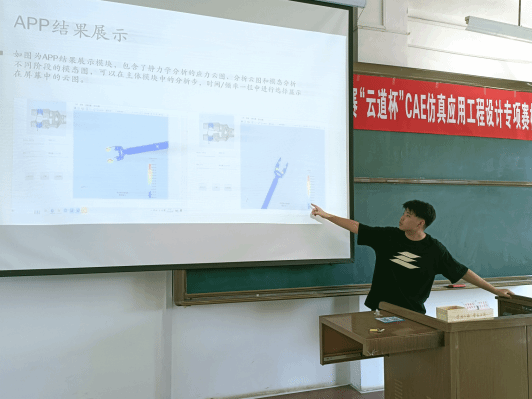 全国三维数字化创新设计大赛“云道杯”CAE仿真应用工程设计专项赛主要针对各行业在产品设计、研发等环节中的实际工程问题,要求参赛队伍完成仿真方案设计,实现数字化建模与仿真分析,并封装形成仿真APP。结合竞赛要求,本次校赛共设现场答辩和仿真APP展示两个环节。现场答辩环节涉及赛题工程背景、应用范围、理论介绍、仿真建模流程及方法、仿真结果分析等方面,主要考察员工对于仿真题目的理解以及对有限元仿真分析流程的掌握。仿真APP展示环节涉及APP界面布局展示、模型展示和仿真结果展示三个方面,重点考察员工对于仿真软件操作的掌握。