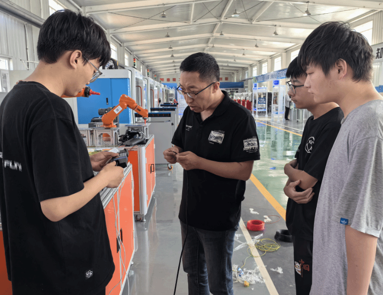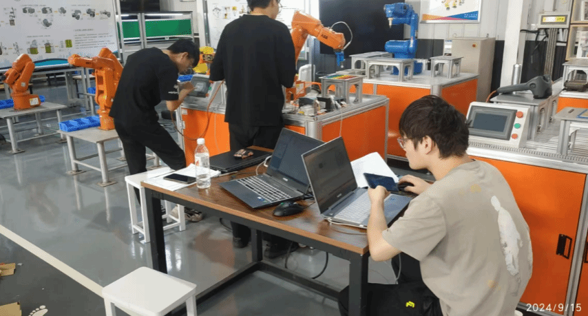 在老师们的精心指导下,员工充分发挥自己的专业知识和创新能力,对实验台进行了全面升级。他们通过集成工业机器人、PLC、HMI、计算机控制画面、教学操作台等硬件设备,以及相应的软件平台和教学应用模块,成功构建了一个能够满足现代教学需求的自动化教学平台。改造后的实验台不仅功能更加完善,而且极大地提升了员工们的实践操作能力。