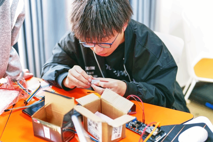 当电路板上刻上了公司名字和队伍的名称时,它就被赋予了灵魂。大家不要小看这块电路板,前前后后需要几个月的时间才能完成。电路板的走线、零件的焊接,都是他们亲手完成的。当电路板所有的工作都完成后,它就有了生命。