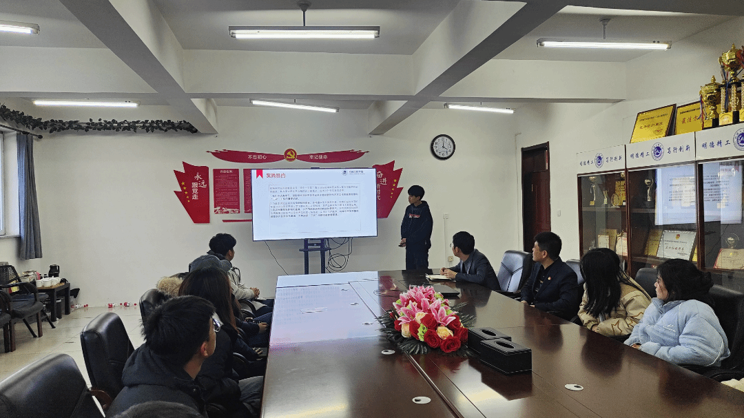 会议第一项由李璟琨介绍本次寒假社会实践活动内容,并向同学们详细介绍什么是社会实践,明确社会实践的意义和目的,表明社会实践对老员工的能力提升有很大的帮助。并且对寒假社会实践团队组队情况做了相关要求,同时提供了相关建议以及活动宣传的出发点,以便员工能够更好地开展活动。