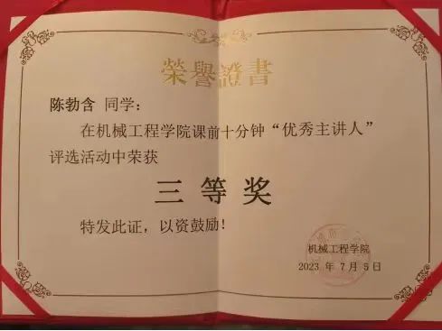 2023年EMC易倍官方网站“课前十分钟”优秀主讲人评选三等奖