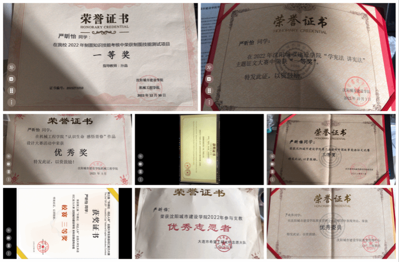她大一时参加了不少活动。职业生涯规划(未来足迹)活动,互联网+,生态环保竞赛校级赛,冬日暖阳温暖有你活动,“青春辽宁 雷锋精神我传承“活动,“凡人善举我来拍”短视频征集活动,书法比赛书香墨韵活动,“镜头探初春,书墨香满园 ”摄影比赛,第一届“一站式”员工社区文化空间设计大赛公益广告设计这些活动,给她带来了多样化的大学体验;她积极参与各类大赛,其中有接触到创新创业大赛项目。参与过机器人大赛的团体赛省赛获得第一名,国赛获得第三名。非常荣幸能够在大一的时候就能得到锻炼,遇到了一个负责任的大赛项目老师和一个悉心指导她的学长。同时,她还参加过互联网+大赛,虽然最后没得出结果,可也从方方面面了解到了互联网平台连接企业云平台,来控制创新企业云平台,达到精准扶贫的目标。