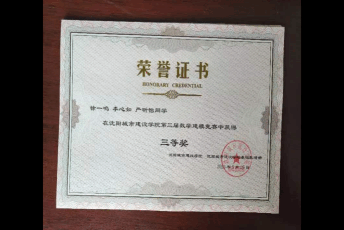 数学建模校赛三等奖
