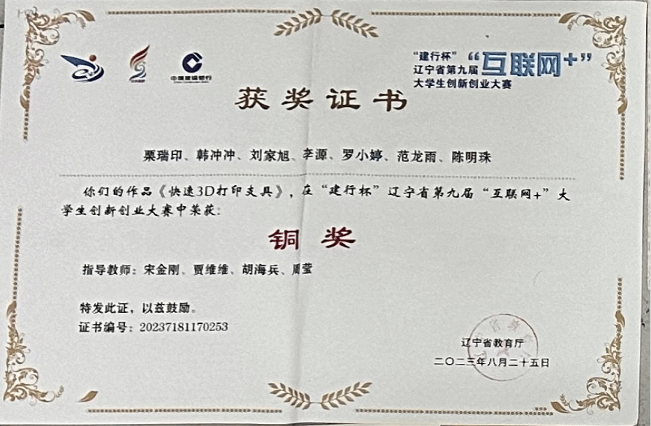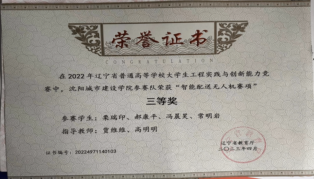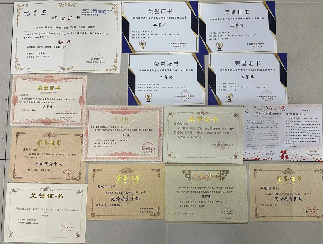 他在大学读书期间积极参加各类学科竞赛,申请了FDM技术3D打印鞋识别检测系统专利;在科学大众发布了《小型无人机应用与控制进展》论文;在金相技能大赛中获得了省赛一等奖,在中国机器人及人工智能大赛中获得了三等奖;在辽宁省本科老员工工程实践与创新能力大赛中获得了三等奖;在第九届老员工互联网+创新创业大赛中获得了铜奖;在2022-2023学年获得了董事长奖学金。