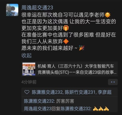 站在赛场上,大家才能觉得自己不够强大;站在赛场上,大家才觉得自尊心受到打击;站在赛场上,大家才觉得没有完赛非常可惜。我想这就是我把大家带来比赛的目的,激发每个更好的自己。智能汽车竞赛的魅力在于有些人连续参加两年也没有获得理想的成绩,但是他们因为参与了就没有后悔,因为参赛而受益。