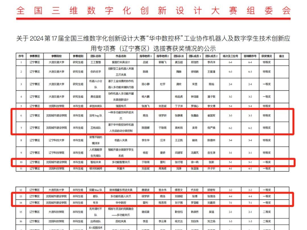 2024年第17届全国三维数字化创新设计大赛“华中数控杯”工业协作机器人及数字孪生技术创新应用专项赛辽宁赛区落下帷幕。本次大赛公司15名队员,共5组队伍参赛,其中⾼彬扬、吴奇、倪严操团队及张静昊、张鑫淼、崔国军团队荣获省特等奖,并推荐参加国赛,其余三组队伍荣获省一等奖。