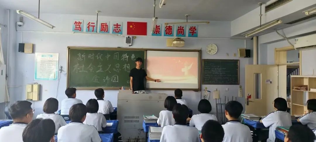 8月中旬,成员们来到天津市小坨小学进行理论知识宣讲,带领员工们深入学习贯彻习近平新时代中国特色社会主义思想,通过多种不同的的形式为员工们做了详细的讲解和介绍,例如,PPT、板报、宣讲手册等。引导孩子们在童年时期就厚植家国情怀,树立理想信念,明确奋斗方向,将爱国融入行动,争做新时代的好少年。